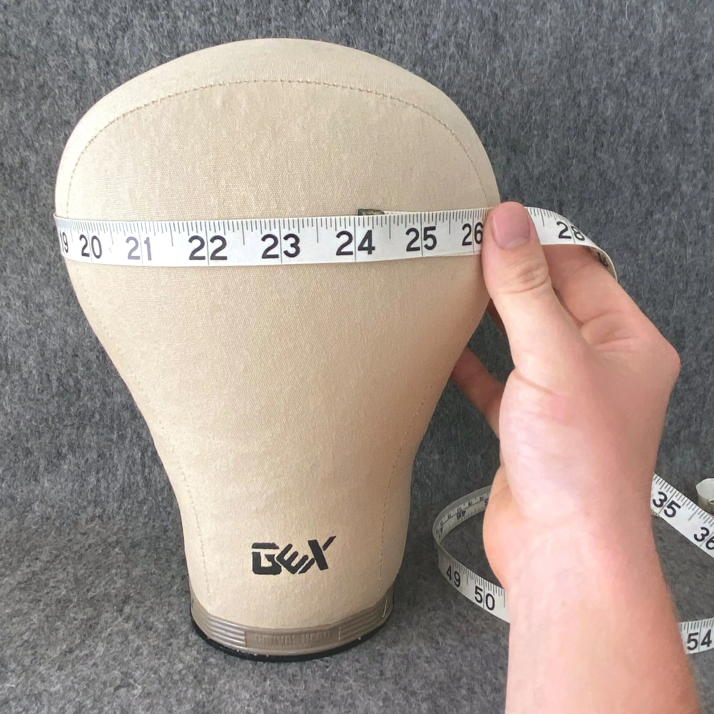 Hold the tape gently around the widest circumference of your head (without pulling taught) Repeat this process three times to check your measurement is consistent.