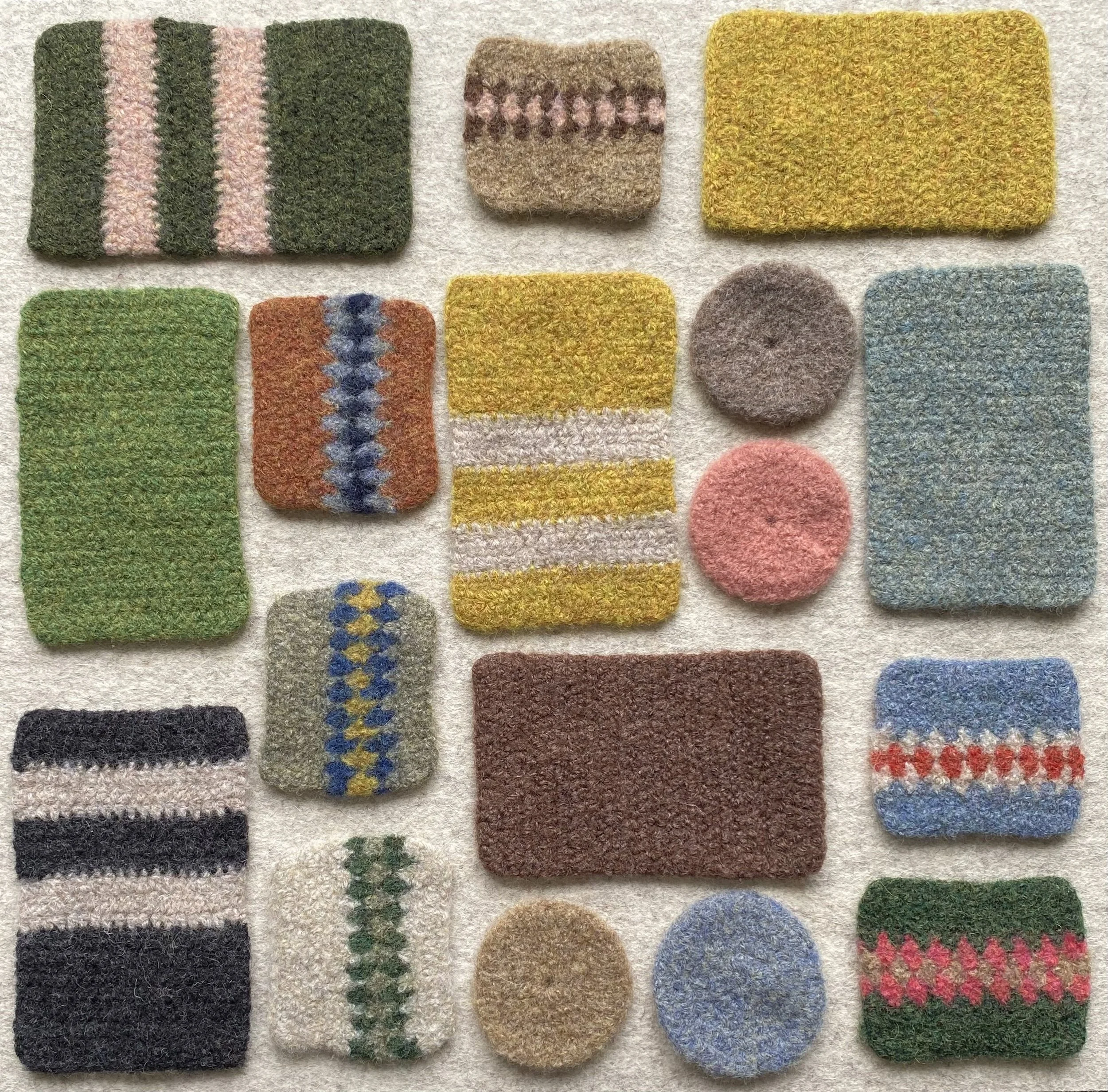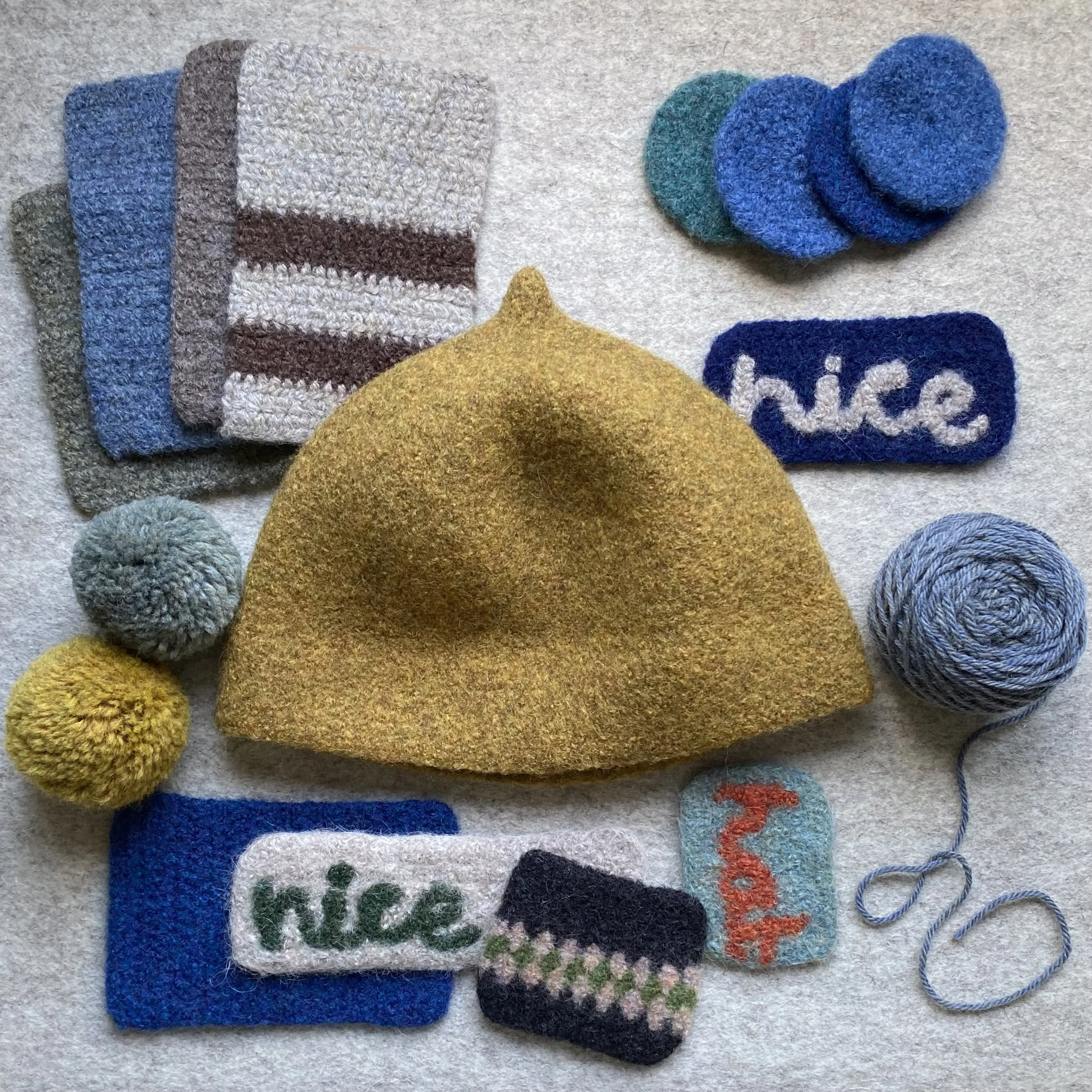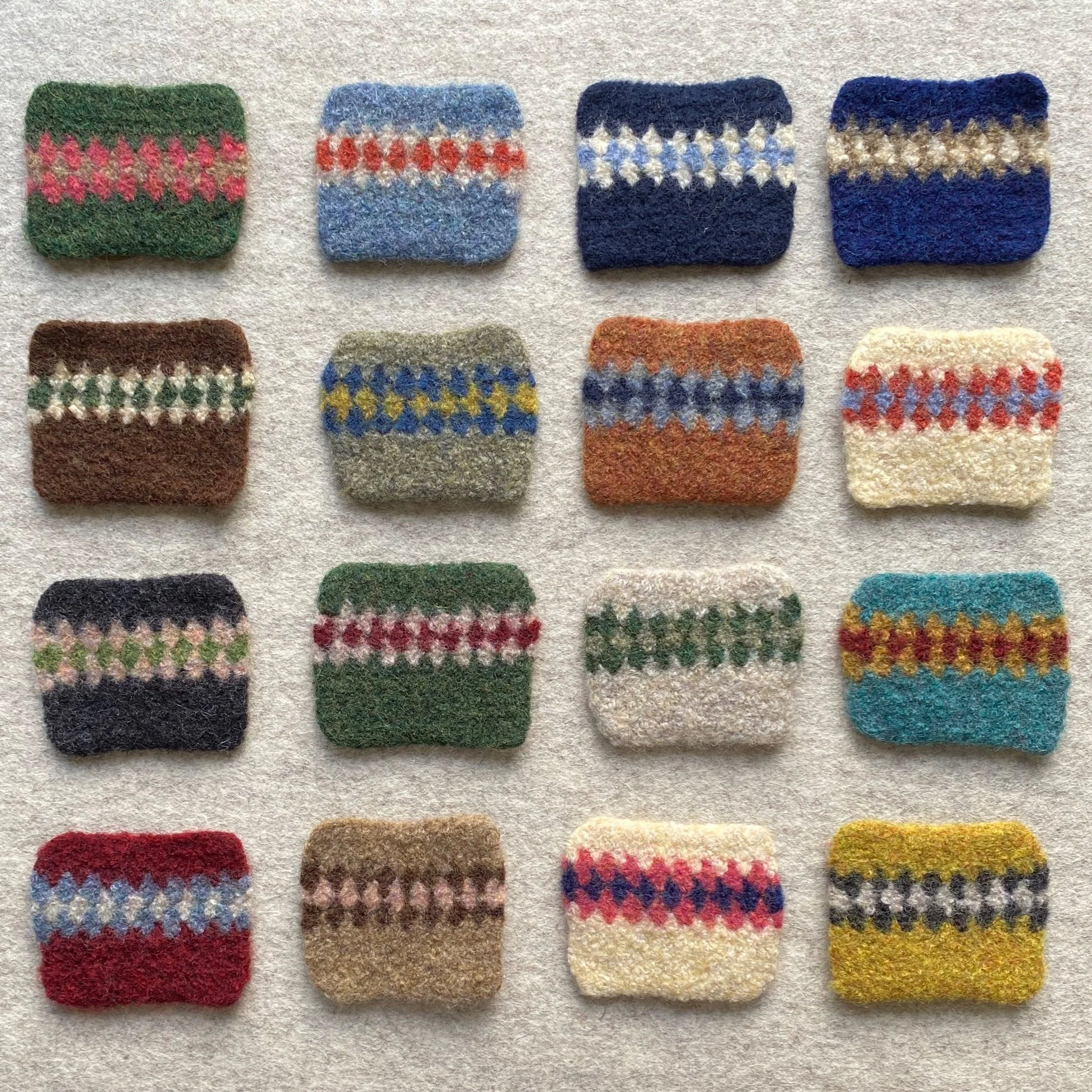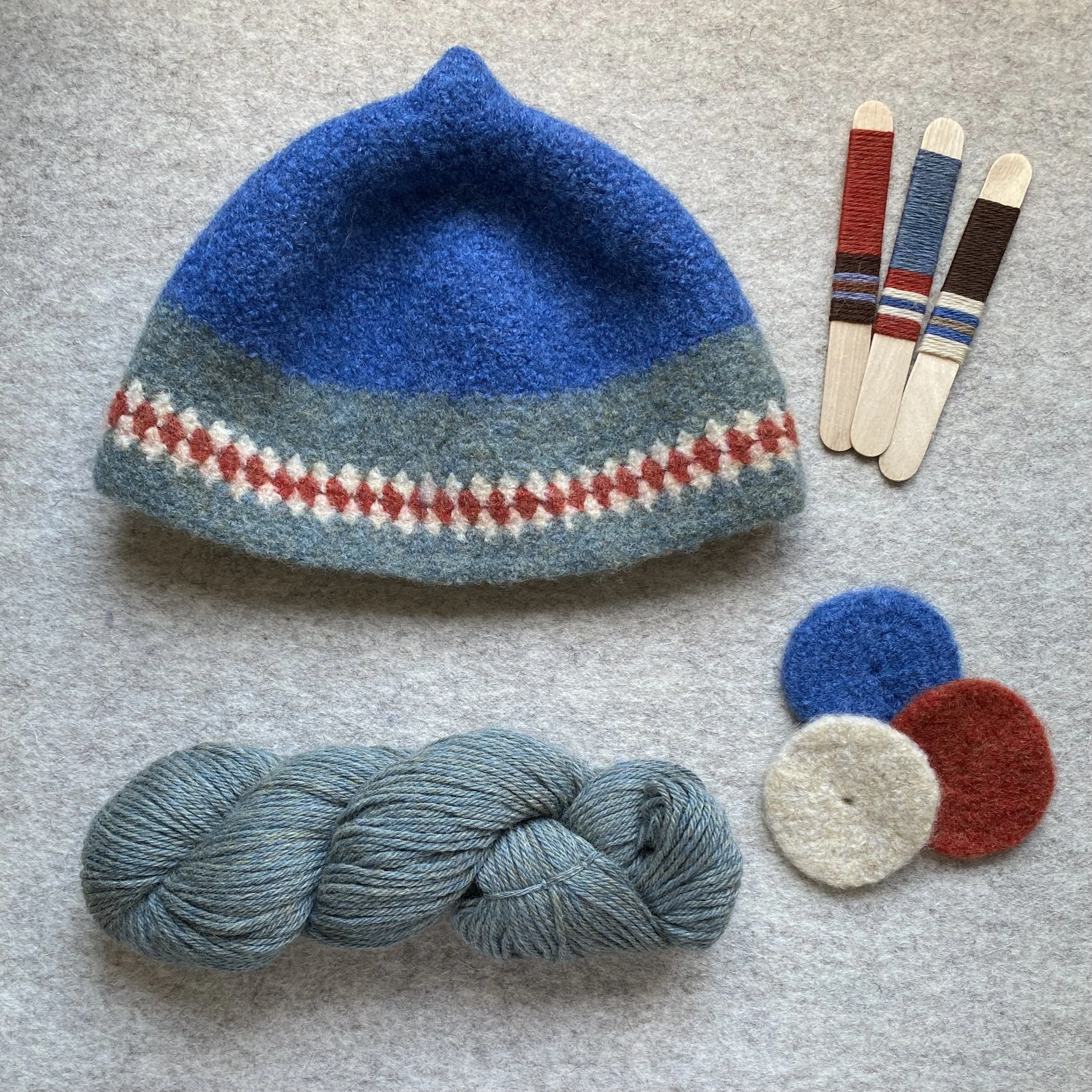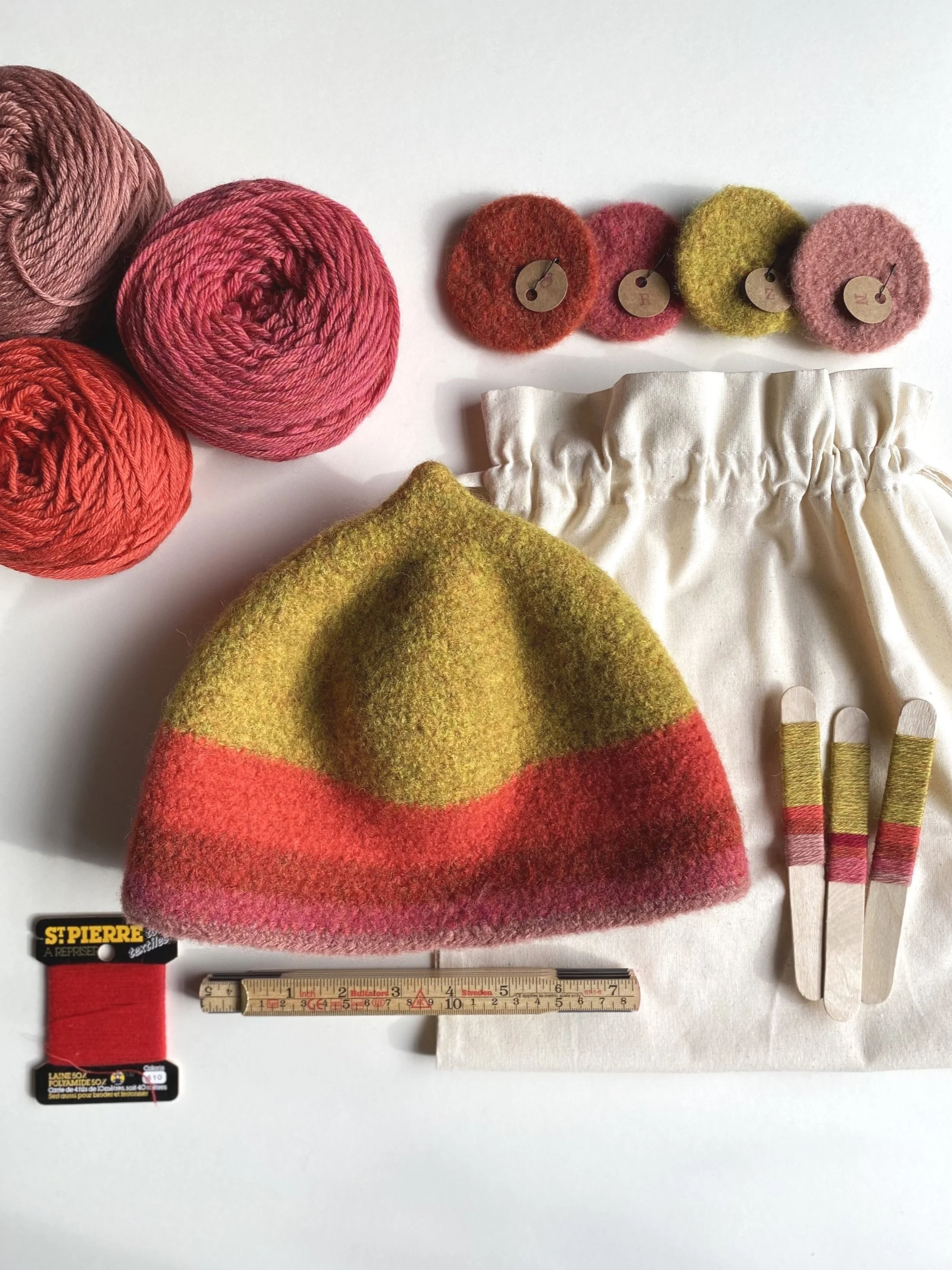 Choose colours from my felted samples (or request a specific shade), and adjust pattern or stripe placement within my existing designs.